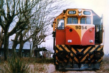 que las vías aún estaban en uso. En la otra, una espectacular vista de la locomotora GT 22 Nro. 9054 con el esquema de colores típico de Ferrocarriles