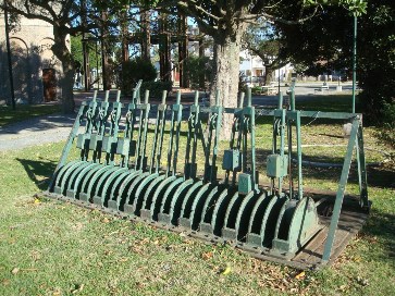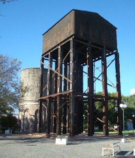 6. Marco de palancas para señales y cambios gobernados desde la Estación. // 7. Imponentes tanques de agua.