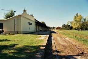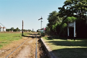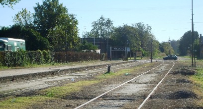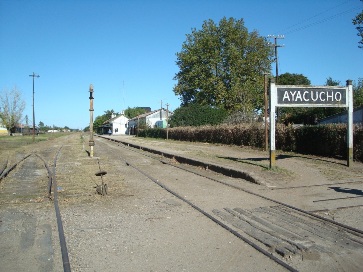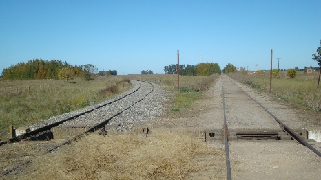 se ven las 2 vías que continúan paralelas por algunos cientos de metros y que luego se abrirán, una hacia Quequén y otra hacia Tandil.
