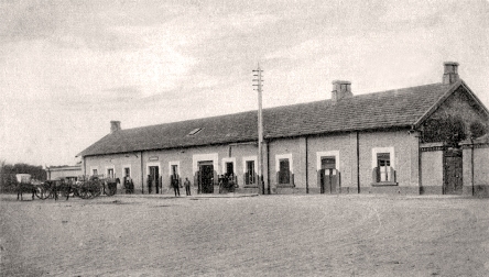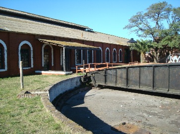 16. Otro gran edificio ferroviario y los paragolpes de la playa de maniobras.