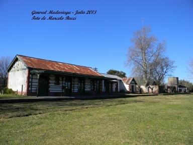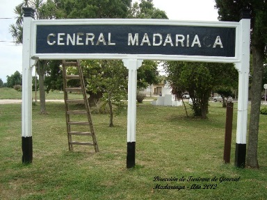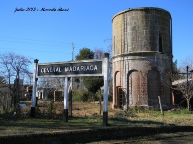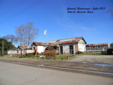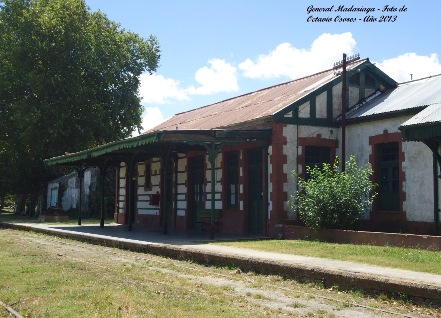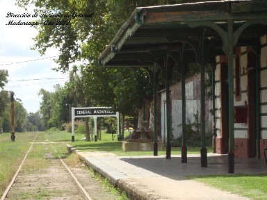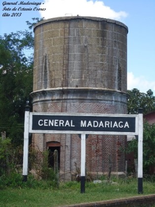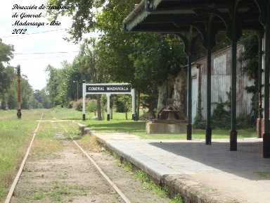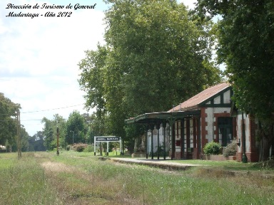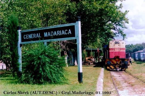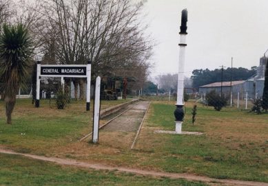 General Madariaga con sus vías truncadas luego de varios años de abandono de este ramal. Imagen del año 1993.