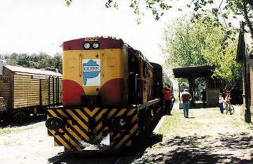 En la primera fotogafía vemos el tren que se corrió para re-inaugurar el servicio hasta la nueva estación Divisadero de Pinamar (1996),