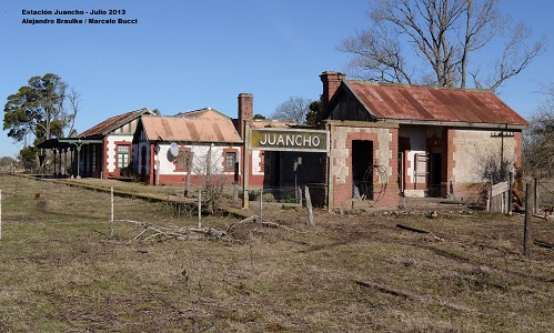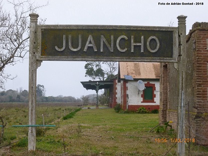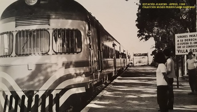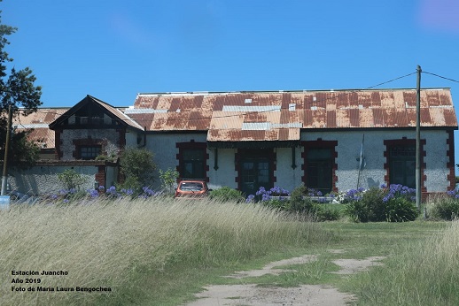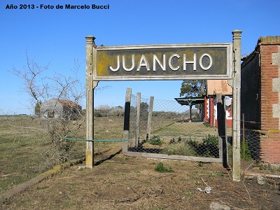 Desde 1912 hasta la década de 1960 por Juancho y las demás estaciones de la vía Juancho, circularon varios servicios de cargas para toda la zona y además un tren de pasajeros que durante algunos años circulaba a Mar