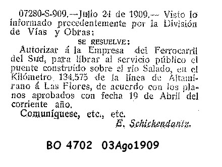 sobre el río Salado, el cual fue colocado algunos metros más hacia el Este que el antiguo de hierro que se venía usando.