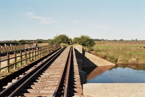 por el viejo camino de tierra que corre paralelo a las vías entre Villanueva y General Belgrano.