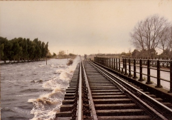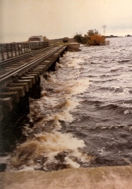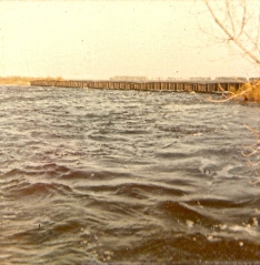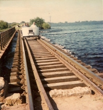 Ambas muestran la curva y contracurva que se tendió para enlazar la antigua traza con el nuevo puente ferroviario de hormigón