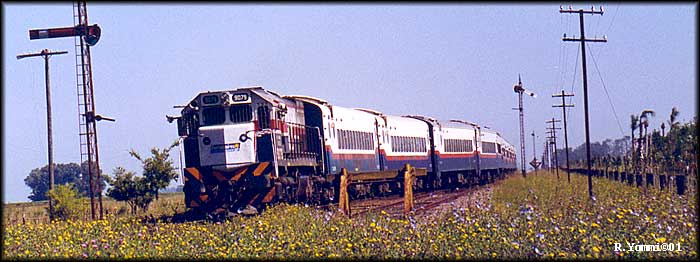La 9079 en el empalme del km 109,324 (antes de llegar a Chascomús donde la vía doble se transforma en sencilla).
